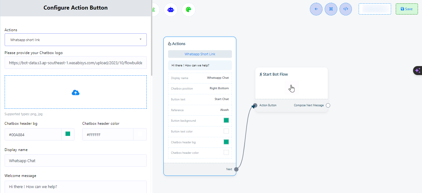 - Now let’s add desired reply from the `Start Bot Flow` and save the flow.